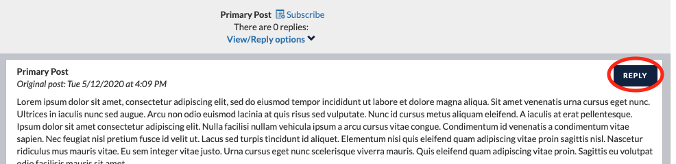 Para responder às outras postagens, clique no nome da postagem com a qual você gostaria de interagir e cliquem “Responder” [Reply] para ter a mesma caixa de texto que você viu quando criou o post primário.
