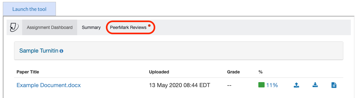 Você também pode navegar para essa área para fazer a revisão do trabalho de um colega de turma. Uma guia para esse propósito estará visível dentro da caixa do Turnitin se esse recurso estiver disponível.