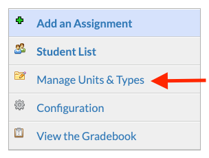 Pense nos tipos [types] como uma categoria de tarefa [assignment]. Cada tarefa que você passar irá requerer um tipo. Mesmo se você não planejar atribuir pesos de notas por tipo, configurar os tipos corretamente pode atenuar quaisquer questões ou receios sobre as tarefas que você criar para a sua disciplina.