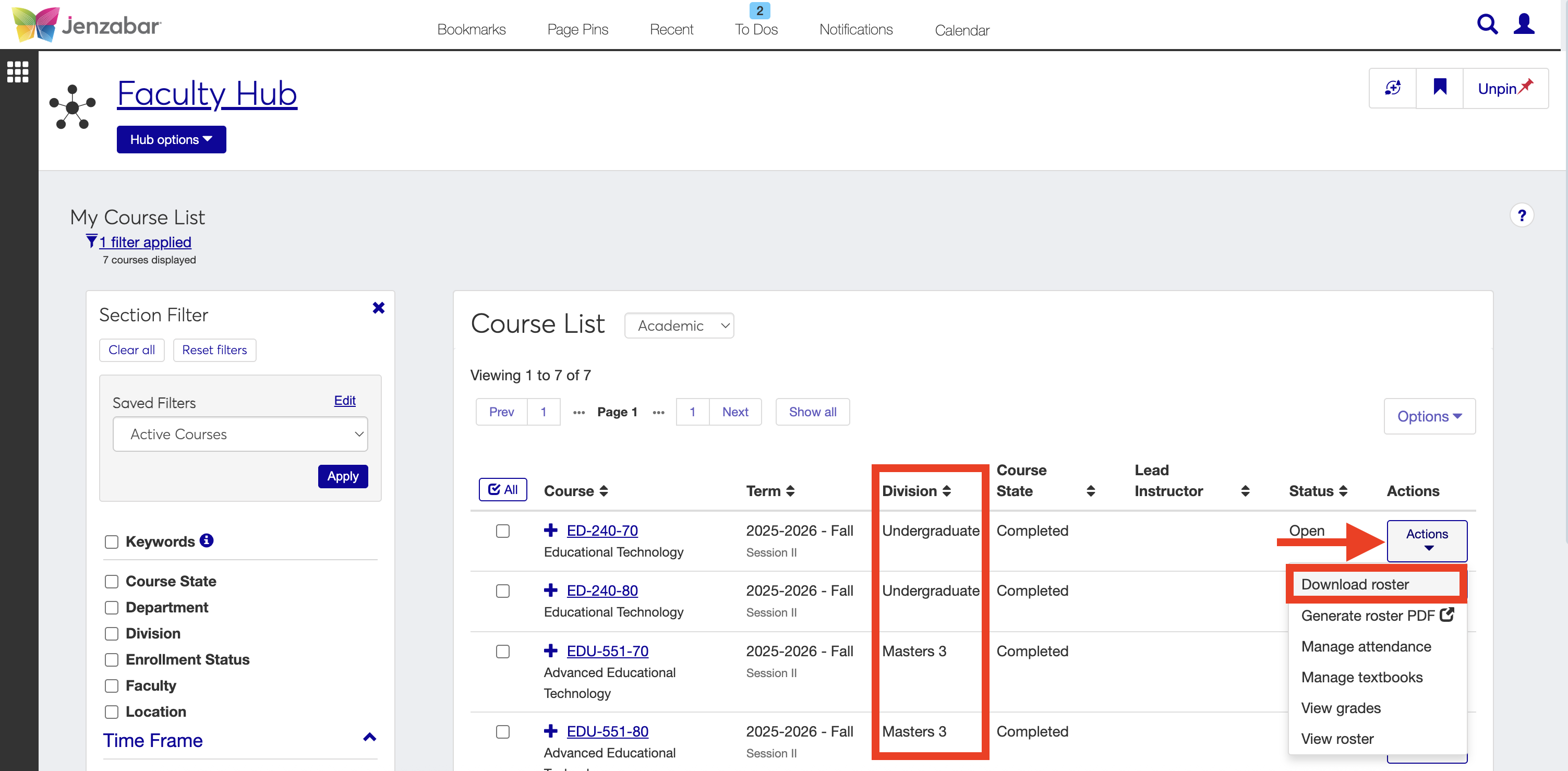 Faculty should identify which students in the roster belong to which group. This is accomplished by accessing the course rosters in J1 Web: Student>Faculty>Manage my course list.